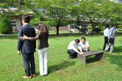 また「超・参加型セミナー」の名の通り、ほかの参加者と一緒に行う「ヒーローインタビュー」や、セミナールームから緑溢れるキャンパスへ出て実践した「ブラインドウォーク」など、さまざまなワークショップを交えて進められた3時間。「座学だけではなく、面白くて非常にわかりやすい」と好評でした。